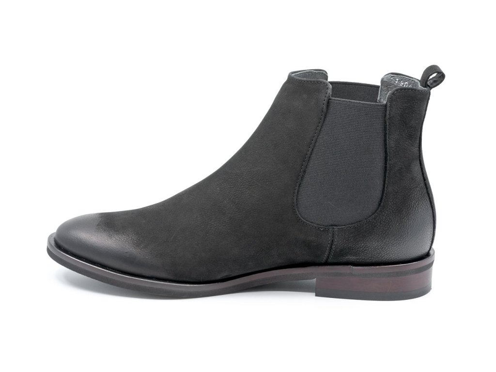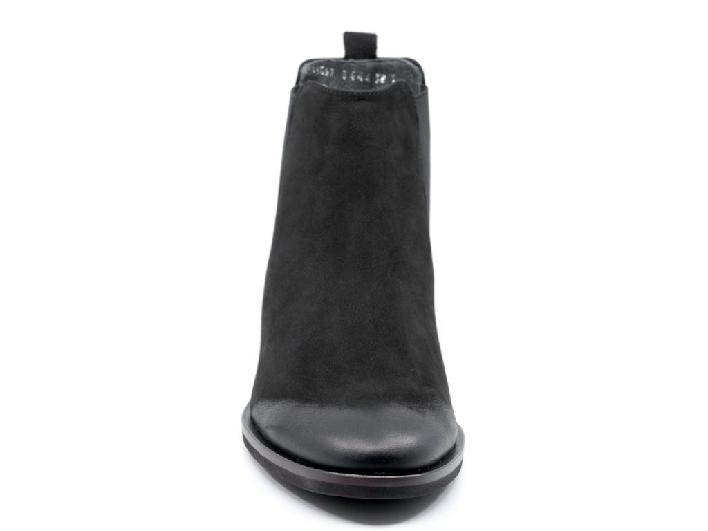 Dámskou kotníkovou obuv Dapi z nubuckové kůže můžete jednoduše obout a vyrazit do městských ulic. Jemná kůže v černé barvě je se širokými pružinkami po bocích, díky pružinkám se obuv snadno obouvá a je velmi pohodlná na nošení. Pérko má podšívku v kombinaci textilu a kůže. Výška obuvi činí cca 11 cm. Podpatek je o výšce cca 2,5 cm. Tloušťka podešve 1 cm, horní obvod 26 cm. Tento model je vhodný pro chodidla typu G.>