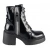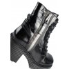 Moderní a neokoukaná je tato kožená kotníková lakovaná obuv v klasické a nestárnoucí černé barvě, která podtrhne váš podzimní outfit. Výrazným detailem je černo stříbrný pruh s ozdobným zipem, který botě dodává na originalitě. Stabilní špalíkový podpatek jen podtrhuje celkový moderní vzhled boty. Obuv je vhodná pro chodidlo typu F.