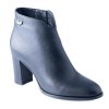 Černá kožená kotníková obuv s elegantním podpatkem.