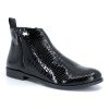 Elegantní dámský kotník z černého lakovaného kroka kůže zn. Dapi je příjemně zateplen. Dva funkční zipy umožní snadné obutí. Výška kotníku 9,5 cm, horní obvod 25 cm, tloušťka podešve 0,7 cm, výška podpatku 2 cm. Tento model je vhodný pro chodidla typu F-G.>Doplňkové parametry