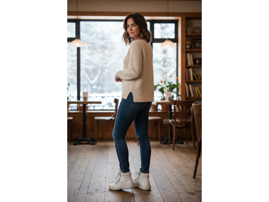 Celoroční bílá kůže s jemnou patinou je krásná, pevná a po impregnaci zvládá i déšť, sníh a slush.