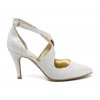 Připravujete se se na významnou událost? Dapi vám k této příležitosti nabízí velmi pohodlné syntetické lodičky na vyšším podpatku s koženou vyměkčenou stélkou. Tyto jemně strukturované stříbrné lodičky jsou obohaceny o dva překřížené pásky na nártu. Výška podpatku je 8,5 cm. Tento model doporučujeme i budoucím nevěstám nebo jejich maminkám.>Doplňkové parametry