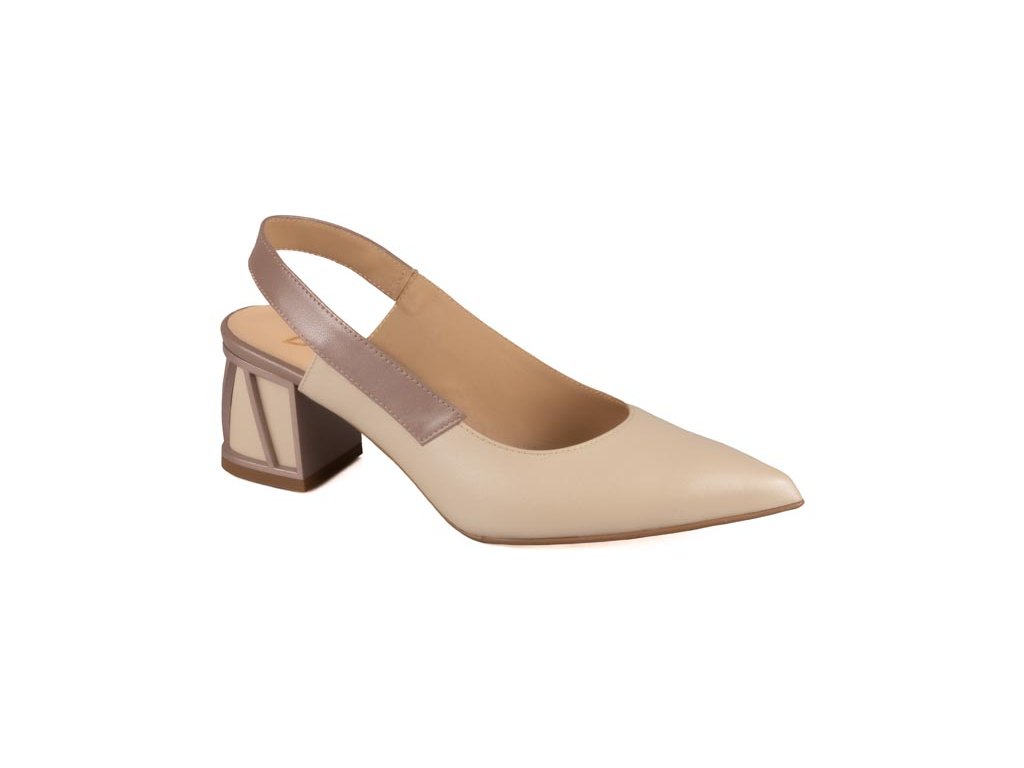 Originální lodičky s otevřenou patou s velmi zajímavě řešenou barevnou kombinací béžové a fialkové perleti nesmí chybět ve vašem botníku. Podpatek je velmi zajímavý a nabízí díky výšce 6,5 cm a šířce velmi stabilní a komfortní chůzi. Dalším plusem jsou vyměkčené stélky a samozřejmostí jsou nahradní plátky. Vhodná lodička pro chodidlo typu F.