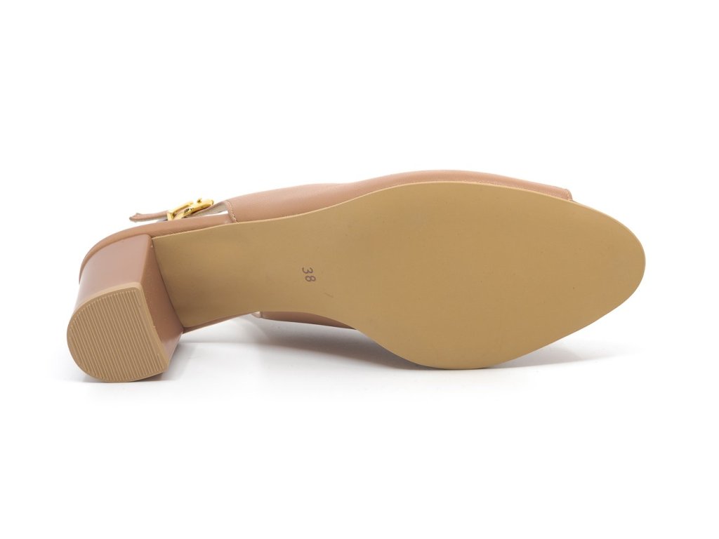 Dámské kožené lodičky zn. Dapi v béžovém provedení s ot.patou a zapínáním kolem kotníku. Kožená stélka je příjemně vyměkčená se srdíčkem pod prsty. Širší podpatek o výšce 6 cm, tloušťka podešve 0,2 cm. Ozdobná spona na špičce obuvi. Náhradní plátky součástí balení. Model vhodný pro chodidla typu F.>Doplňkové parametry
