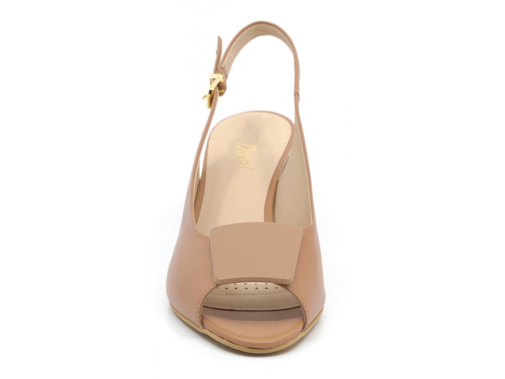 Dámské kožené lodičky zn. Dapi v béžovém provedení s ot.patou a zapínáním kolem kotníku. Kožená stélka je příjemně vyměkčená se srdíčkem pod prsty. Širší podpatek o výšce 6 cm, tloušťka podešve 0,2 cm. Ozdobná spona na špičce obuvi. Náhradní plátky součástí balení. Model vhodný pro chodidla typu F.>