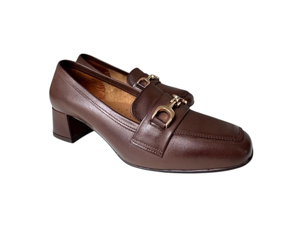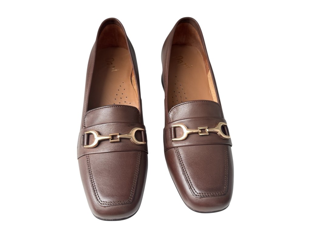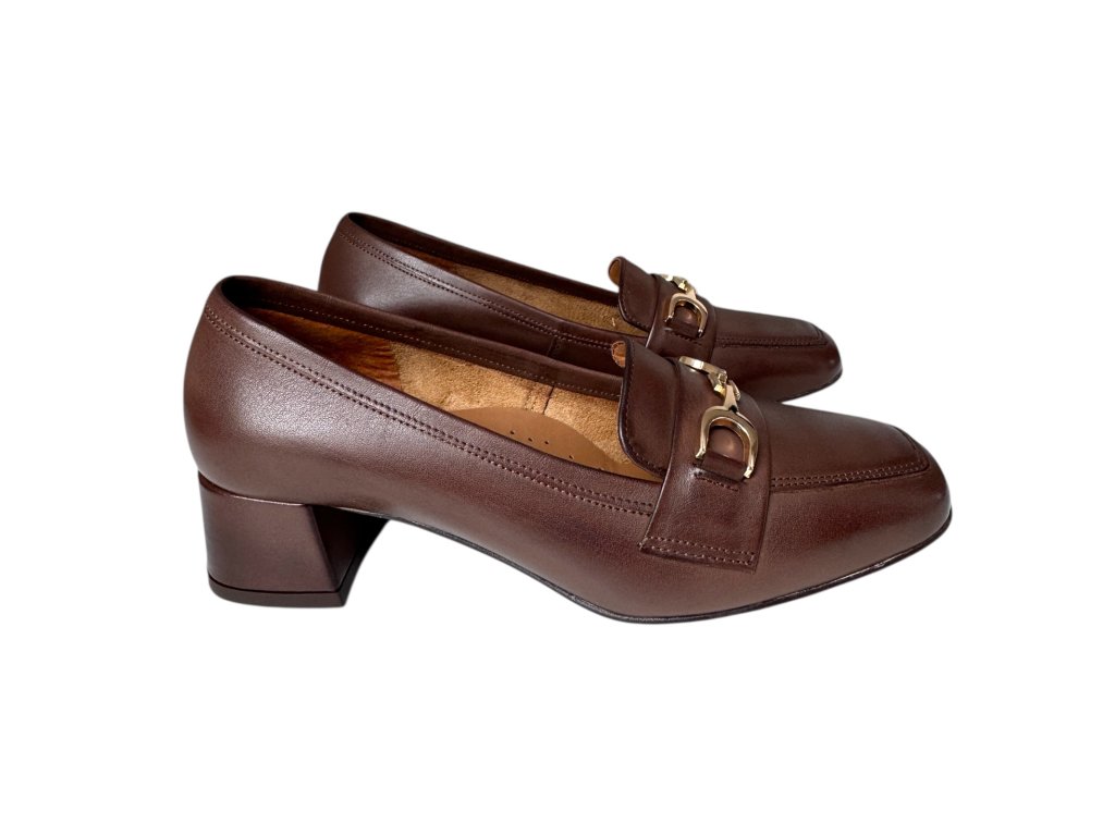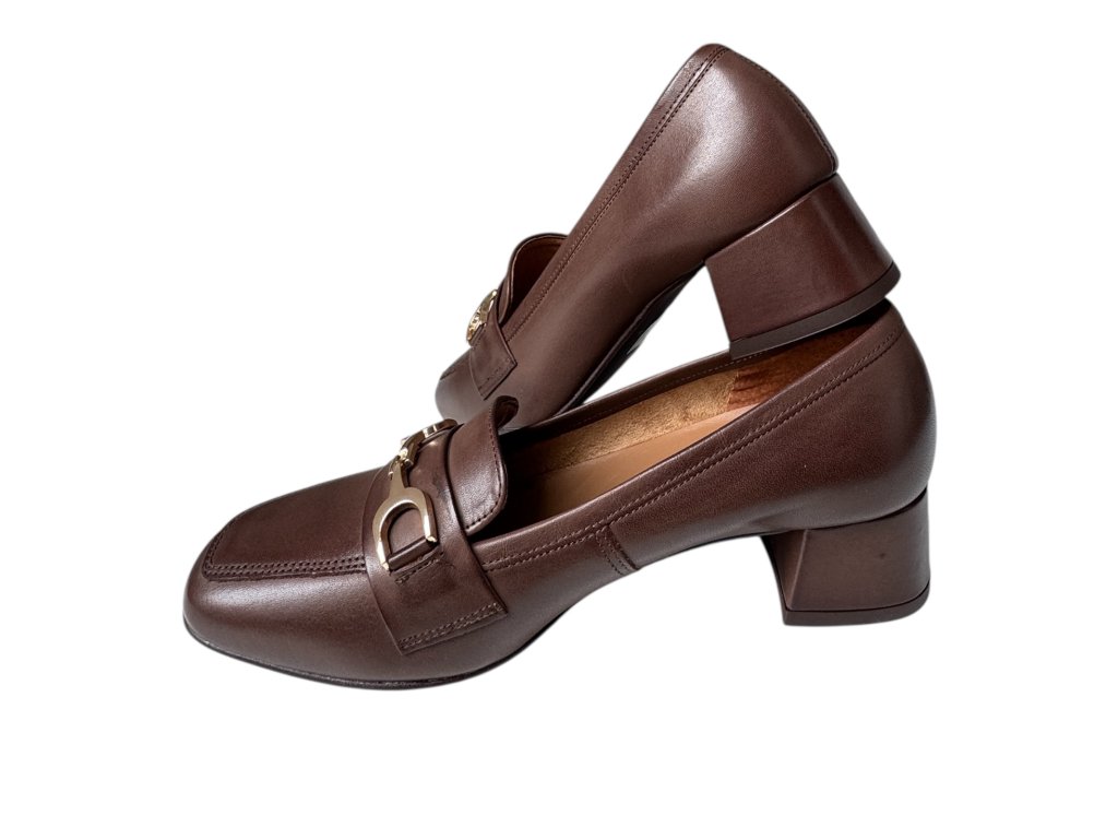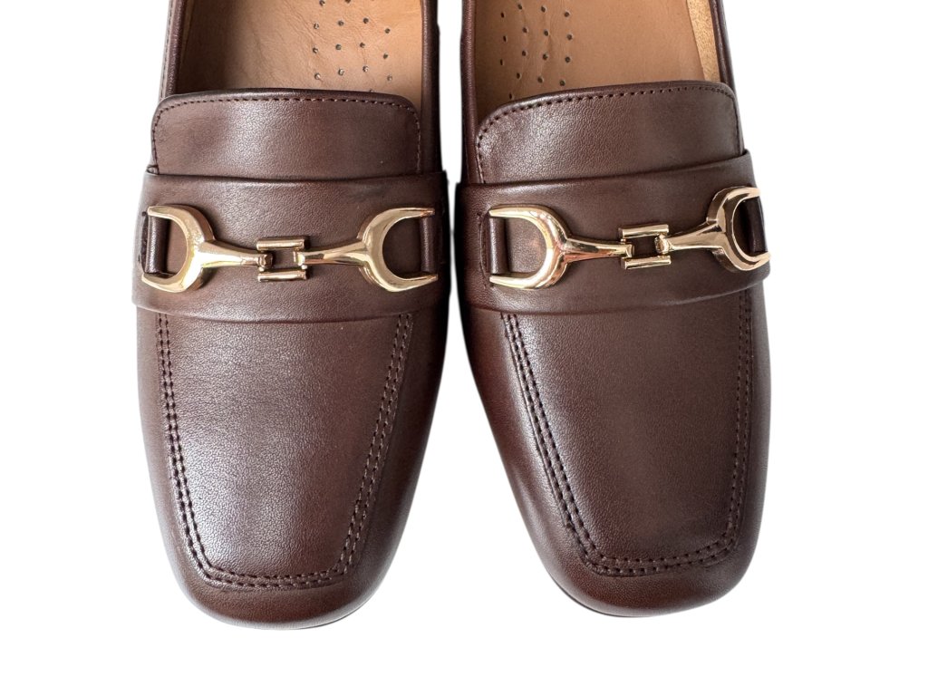 Tyto dámské kožené lodičky v módní čokoládově hnědé barvě představují nadčasovou eleganci, která nikdy nezklame. Čistá linie doplněná o decentní zlatou ozdobu na nártu dodává modelu sofistikovaný akcent a jemný luxusní nádech.