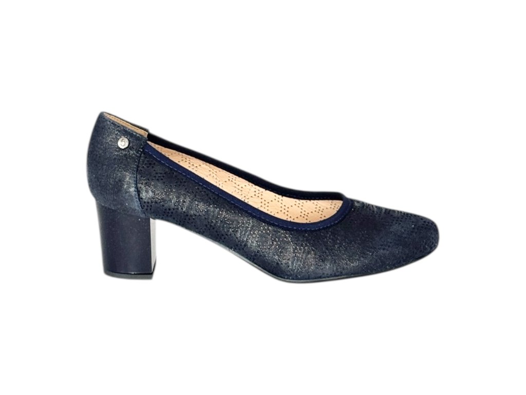 Elegantní dámské lodičky Dapi v modrém odstínu s jemnou perletí zaujmou decentní perforací po obvodu i drobnou ozdobou na patě, která dodává obuvi ženský šmrnc. Stylový, přesto nadčasový design, který spojuje estetiku s praktičností.