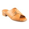 Tyto stylové pantofle jsou celokožené včetně stélky, což zaručuje maximální komfort a přirozené přizpůsobení chodidlu. Přírodní hnědá barva dodává modelu jemnou eleganci, zatímco kovová ozdoba na nártu podtrhuje sofistikovaný vzhled.