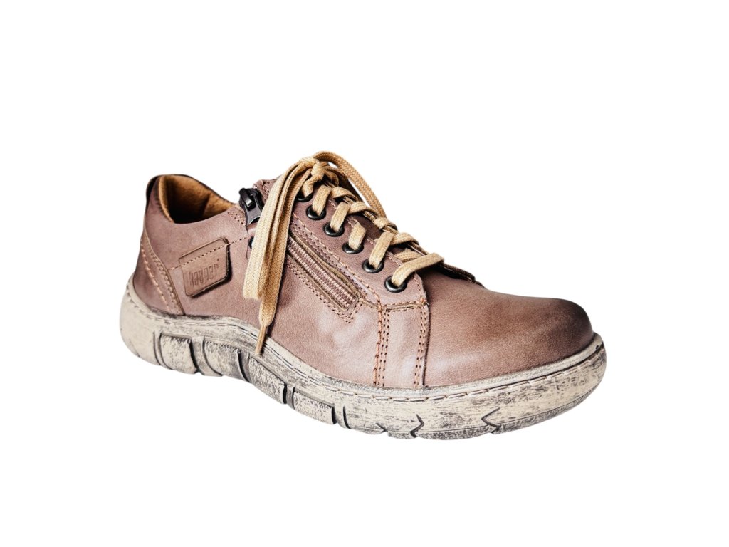 Dámské celoroční zdravotní polobotky Kacper se zipem a tkaničkami jsou ideální volbou pro ženy, které hledají komfortní obuv pro problematické nohy. Praktický zip na nártu výrazně usnadní obutí – skvělé při otocích, omezené hybnosti nebo potížích se zavazováním. Model je vhodný pro široké chodidlo, hallux valgus, typ šíře K, a díky vyjímatelné kožené stélce umožní vložit i vlastní ortopedickou vložku. Flexiblová podešev zajistí pohodlný došlap a celodenní stabilitu.