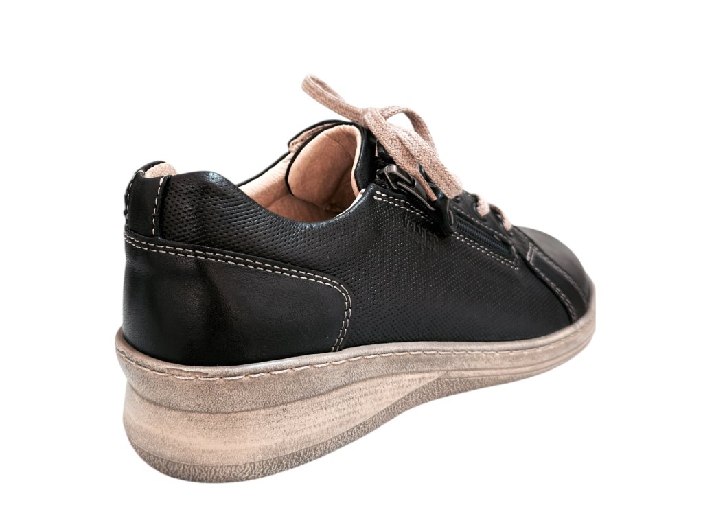 Obuv má vázání na nártu doplněné praktickým bočním zipem, který umožňuje rychlé a snadné obutí bez nutnosti opětovného šněrování. Ideální pro ženy, které chtějí ušetřit čas, ale nepřijít o možnost přizpůsobit obuv přesně své noze.