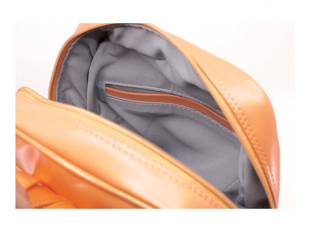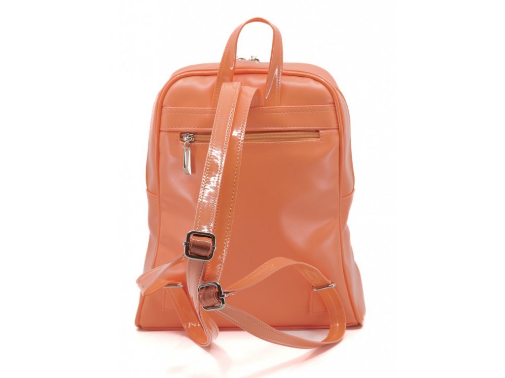 Stylový batůžek značky Dapi je vyroben z módní imitace kůže v lososové barvě s kombinací lakovaného losos. lemu po obvodu batůžku. Batoh je shora uzavíratelný na dvoucestné zdrhovadlo. Batůžek má v přední i zadní části pohotovostní kapsičku na zip. Vnitřní výbava: polyesterová podšívka,1x zipová kapsička a 1x kapsička na mobil. Rozměry výška 32 cm, šířka 27 cm, dno má hloubku 7 cm.>Doplňkové parametry