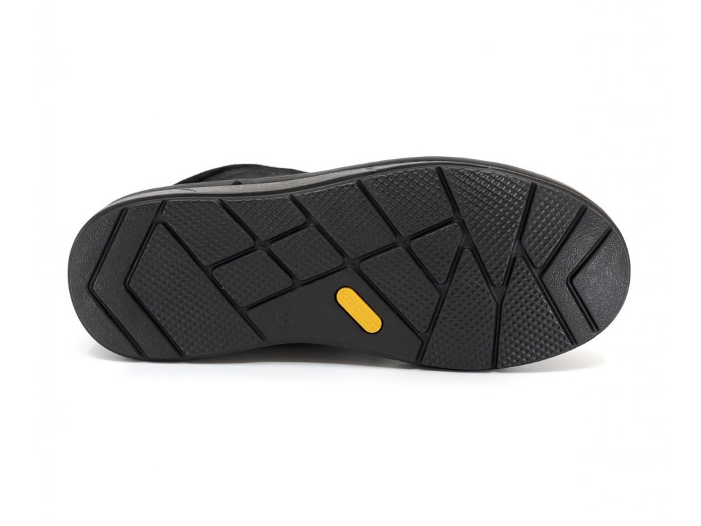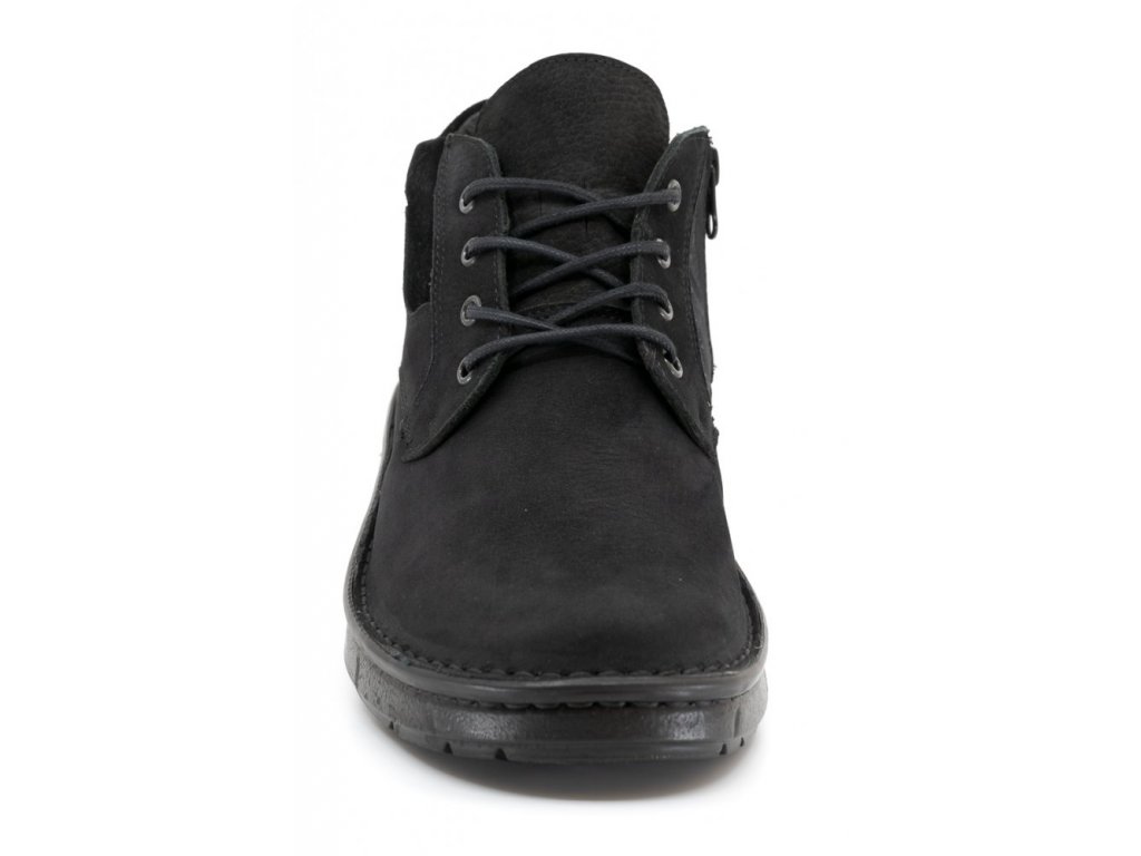 Pánská kožená kotníková obuv zn. Dapi je vyrobena z černé nubukové kůže. Kotníky jsou zateplené textilem s kombinací kůže. Stélka kožená vyměkčená. Jedná se o flexiblovou obuv. Tloušťka podešve 2 až 3 cm pod patou. Výška kotníku 8,5 cm. Model je vhodný pro chodidla typu F-G.>Doplňkové parametry